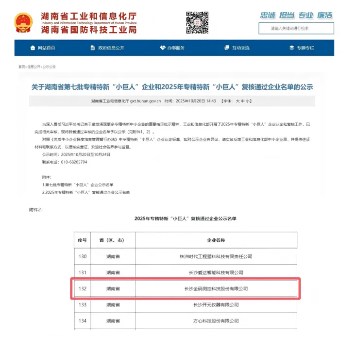През октомври 2025 г. Министерството на промишлеността и информационните технологии завърши процеса на преглед на предприятията „Малки гиганти“ за 2025 г. под класификацията „Специализирани, усъвършенствани, диференциални и иновативни“ и официално публикува списъка. Kingmach Measurement & Monitoring Technology Co., Ltd успешно премина строгия преглед и си възвърна тази чест на национално ниво, благодарение на постоянните си способности за иновации, професионална техническа сила и стабилно представяне на пазара.